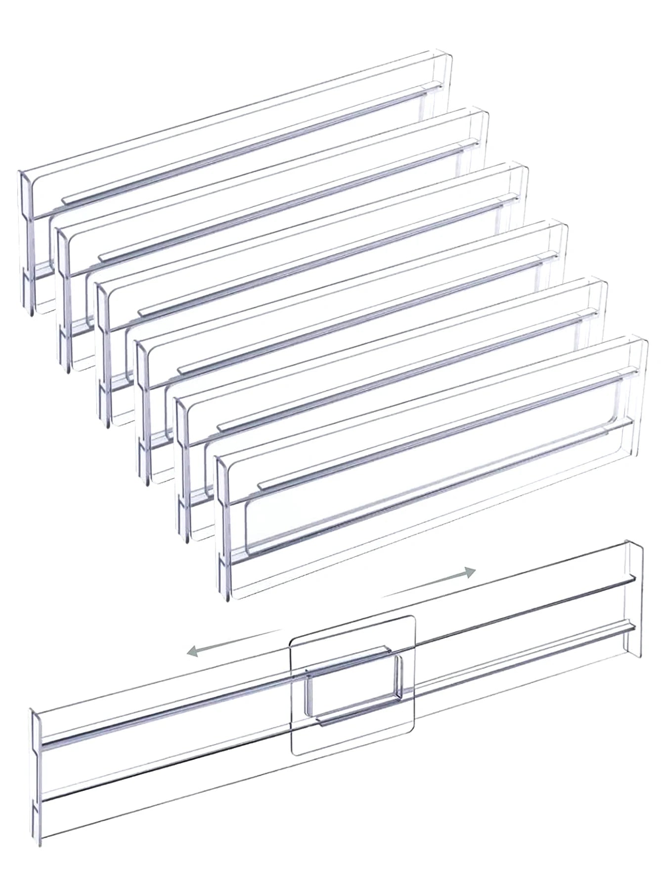 Note: the traceless adhesive on both sides of the drawer partition will not damage the drawer surface, and can be easily torn off by blowing with hot air from a hair dryer.