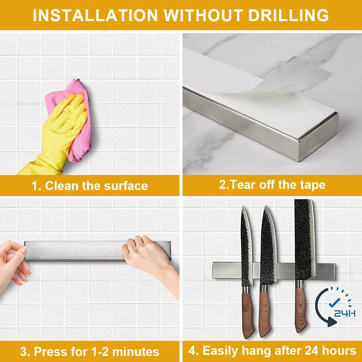 Powerful magnetic force: Upgrade your kitchen organization with our heavy-duty premium magnetic strips. Our magnetic strips feature powerful neodymium magnets that securely hold your knives in place, ensuring they remain in their original position and are easy to access.